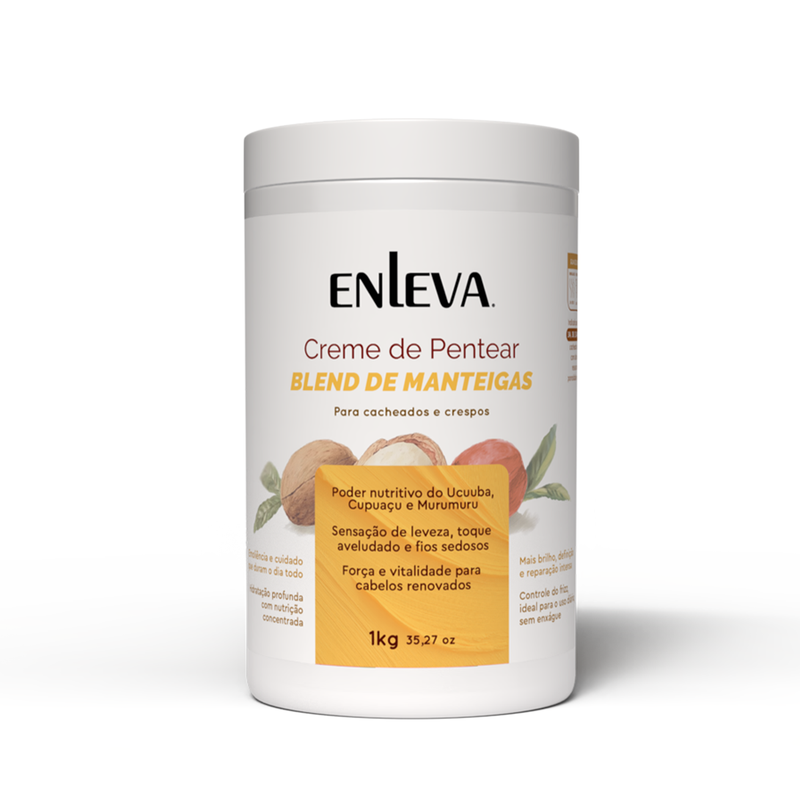 O Creme de Pentear Enleva Blend de Manteigas é um verdadeiro elixir para os cabelos. Com a combinação das manteigas Cupuaçu, Ucuuba e Murumuru, seus fios ficarão nutridos, macios e brilhantes. Além disso, as propriedades dessas manteigas são capazes de aumentar a umidade natural do cabelo, proporcionando mais elasticidade e reduzindo o frizz. Com o uso contínuo, você irá notar uma melhora significativa na saúde dos seus cabelos, deixando-os cada vez mais bonitos e hidratados.